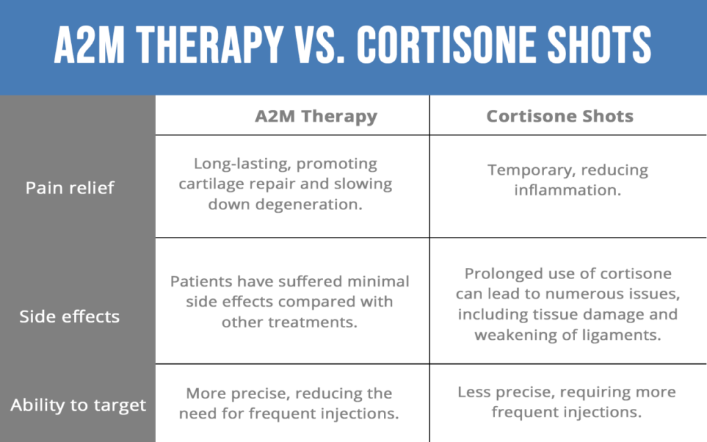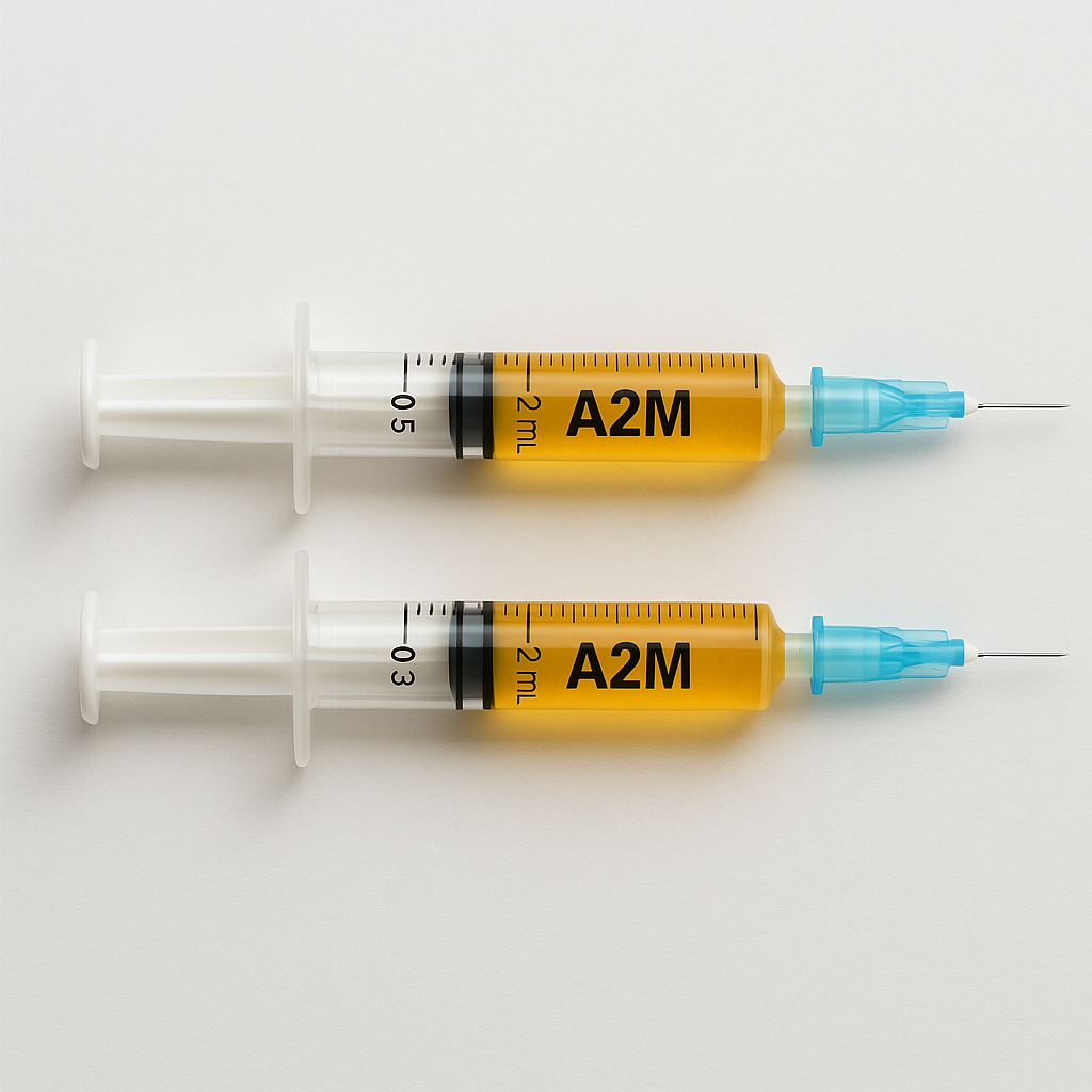What it is: Alpha-2-Macroglobulin (A2M) is a powerful, naturally occurring protein in your blood that works as a protease inhibitor—meaning it binds to and neutralizes the enzymes responsible for breaking down cartilage. This treatment involves drawing the patient’s own blood, isolating the A2M, and using it therapeutically to help protect and preserve joint health.